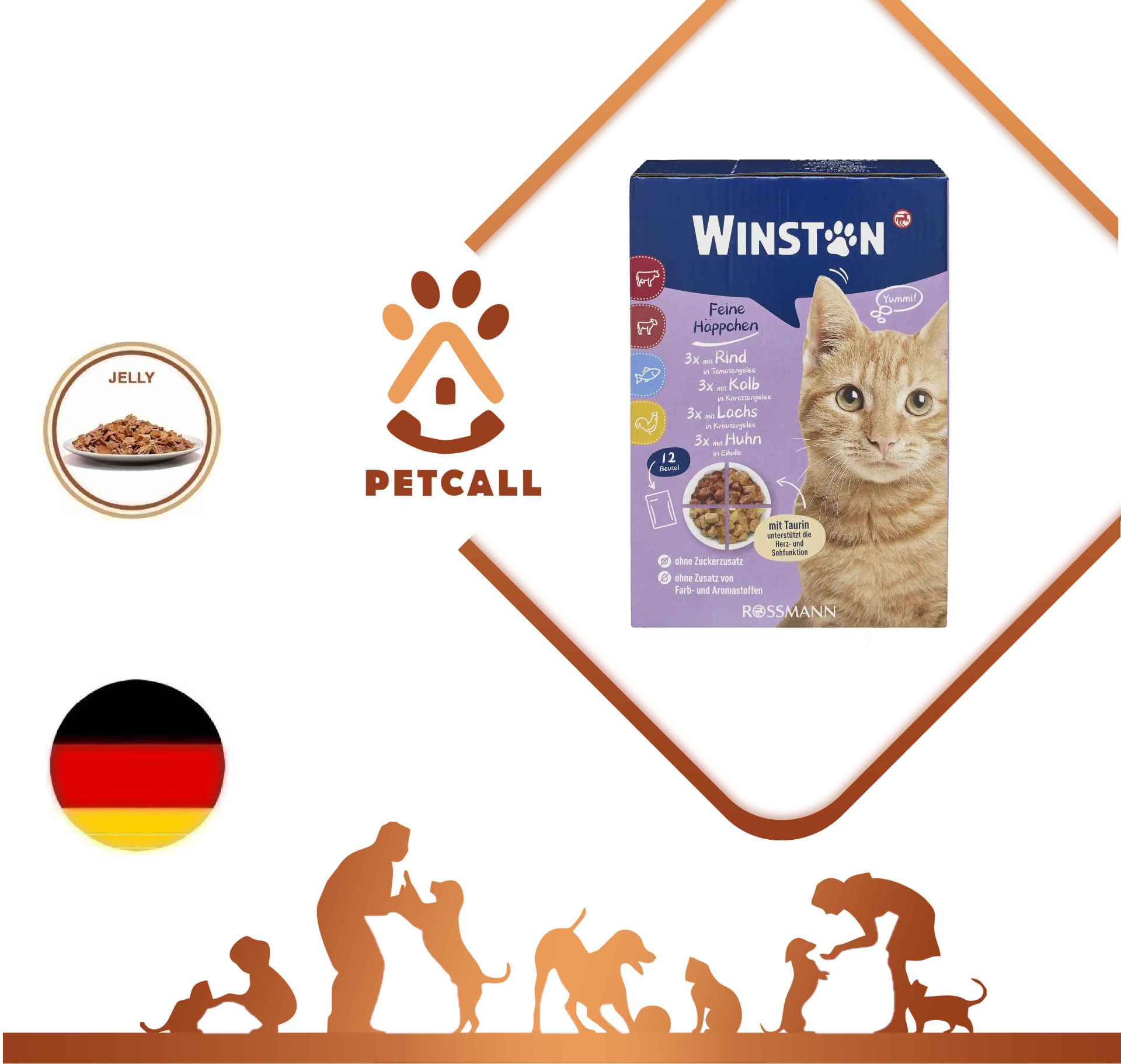 با توجه به تجربه ای که شرکت وینستون در تهیه غذا برای گربه ها دارد با توجه به علاقه گربه ها که در غذا تنوع طلب هستند بسته های پوچ با چند طعم مختلف تهیه کرده است با توجه به موادمغذی و درجه یک وجود تائورین و بیوتین به میزان لازم برای سلامتی قلب و بینایی ، پوست زیبا و براق در پوچ های گربه توجه شده است و بر اساس آخرین تحقیق ها Winston Fine Bites به طور ویژه برای نیازهای غذایی گربه شما طراحی شده است.