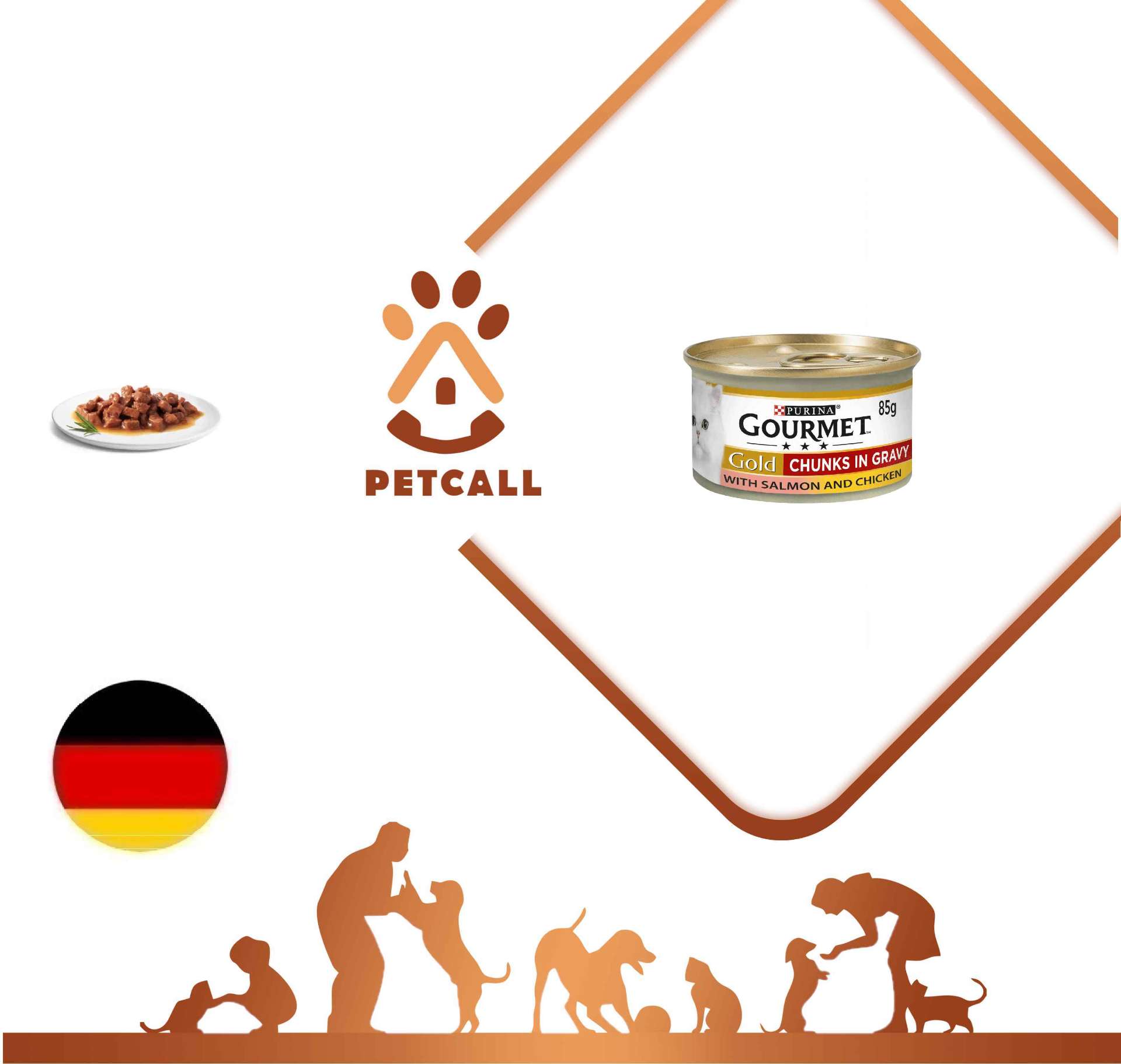 کنسرو گورمت گلد گربه مدل خورشتی طعم مرغ و ماهی سالمون (Gourmet Gold Chunks Chicken & Salmon)