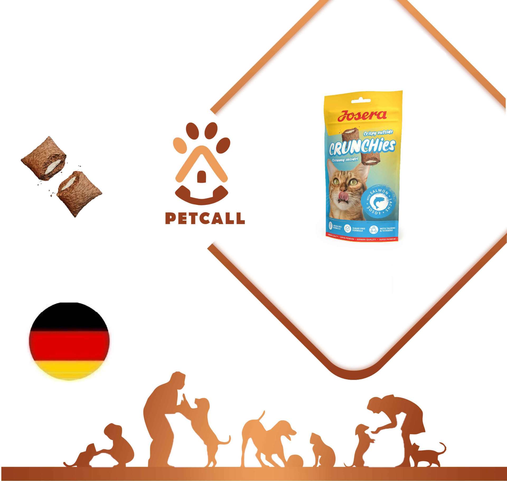 تشویقی های کرانچی جوسرا با روکشی ترد و طعم خامه ای و خوشمزه برای پت های شما می باشد ، این بسته های ترد ماهی سالمون یک میان وعده مورد علاقه برای گربه ها است و با دستور پخت کم کالری و بدون غلات برای مصرف روزانه مناسب است ، همچنین تهیه شده از ویتامین های ارزشمند و تائورین با اثر ضد توپ هایی مویی ترکیب شده.